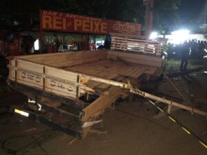 Um pedaço de madeira da carroceria acabou entrando pelo no carro e atingindo a cabeça do motorista que veio a óbito no local.
