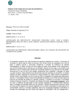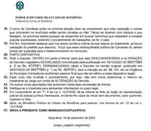 Na decisão do magistrado, cita a manipulação processual nos decretos legislativos, que foram enviados ao Tribunal Regional Eleitoral, onde a Câmara Municipal de Candeias do Jamari, de forma monocrática por meio do então presidente Vereador Aussemir Almeida, realizou a manobra, visivelmente com o objetivo de tirar o ex gestor de fora das próximas eleições.