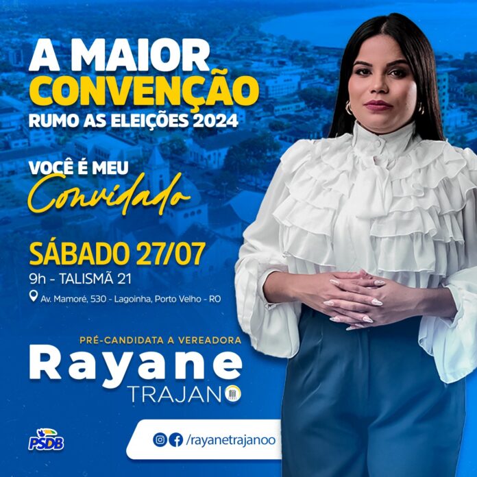 “Estou colocando meu nome pela disposição e importância da representatividade feminina nos espaços de decisão política, convido a todos a participarem da nossa convenção municipal do PSDB, e sou grata ao presidente estadual Prefeito Hildon Chaves pelo convite” Afirmou Rayane.